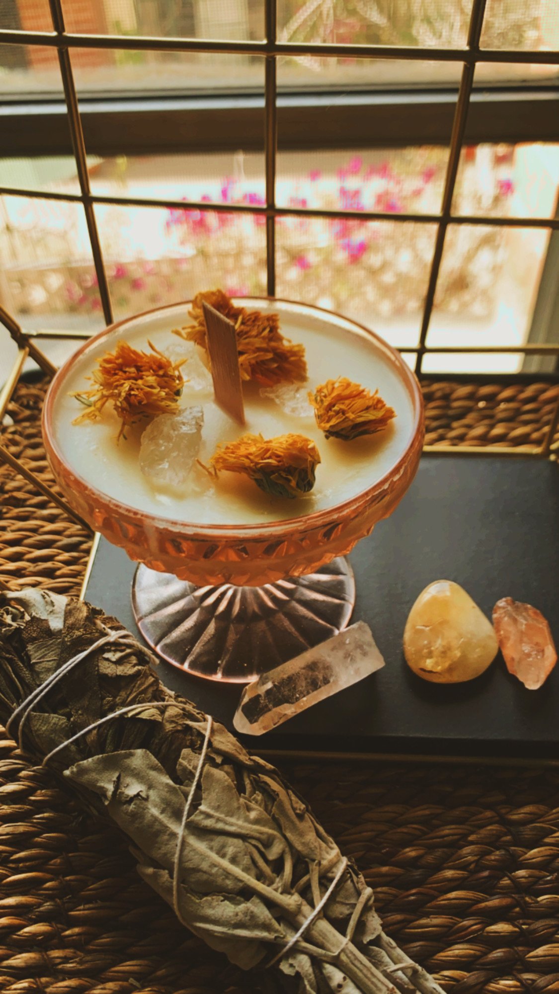 Leave a note with your order describing the personal request for your candle, what energy you want to enhance in your life (reference the key below), or any specific fragrances you would like. I do the work of tailoring dried herbs and flowers, colors, vessel, and essential oils with your desired outcome for a magickal candle made specifically for you.